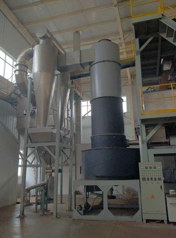 空氣通過鼓風(fēng)機(jī),在熱交換器內(nèi)加熱后進(jìn)入干燥器,旋轉(zhuǎn)的熱風(fēng)與經(jīng)給料機(jī)落下的濕物料接觸,使?jié)裎锪媳韺涌焖俑稍?,在旋轉(zhuǎn)葉片的機(jī)械沖擊和高速旋轉(zhuǎn)熱氣流的吹擊作用下,使物料在浮動(dòng)狀態(tài)下產(chǎn)生劇烈撞擊、剪切和摩擦,粘結(jié)在一起的物料被松散并迅速干燥。物料受槳葉的軸向推力和旋轉(zhuǎn)氣流切線風(fēng)力的作用,瞬間在數(shù)秒鐘以內(nèi)完成干燥。已干燥的粉料隨氣流進(jìn)入旋風(fēng)分離器和布袋捕集器,成品經(jīng)星型卸料器卸去,最后尾氣則經(jīng)引風(fēng)機(jī)排出。